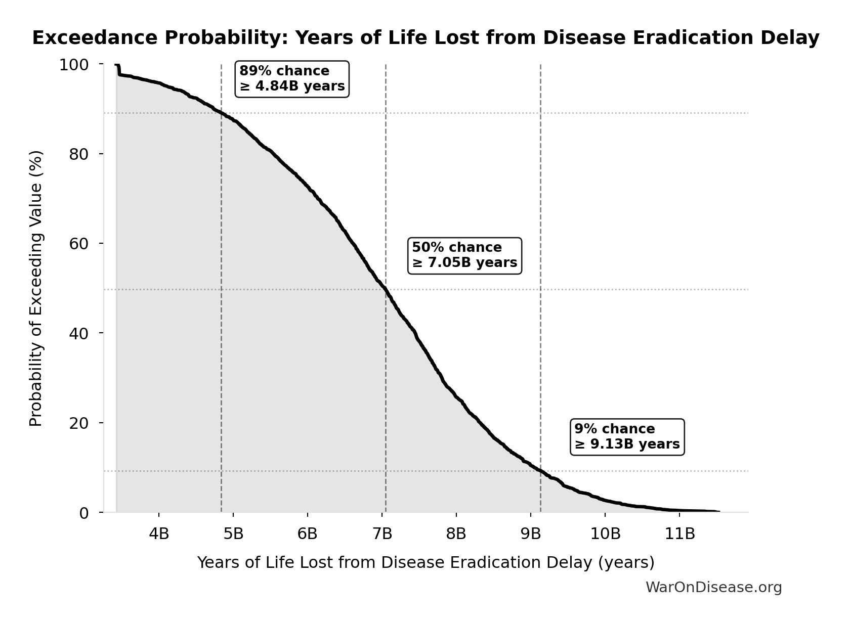 - Years of Life Lost from Disease Eradication Delay π’: 7.07B years