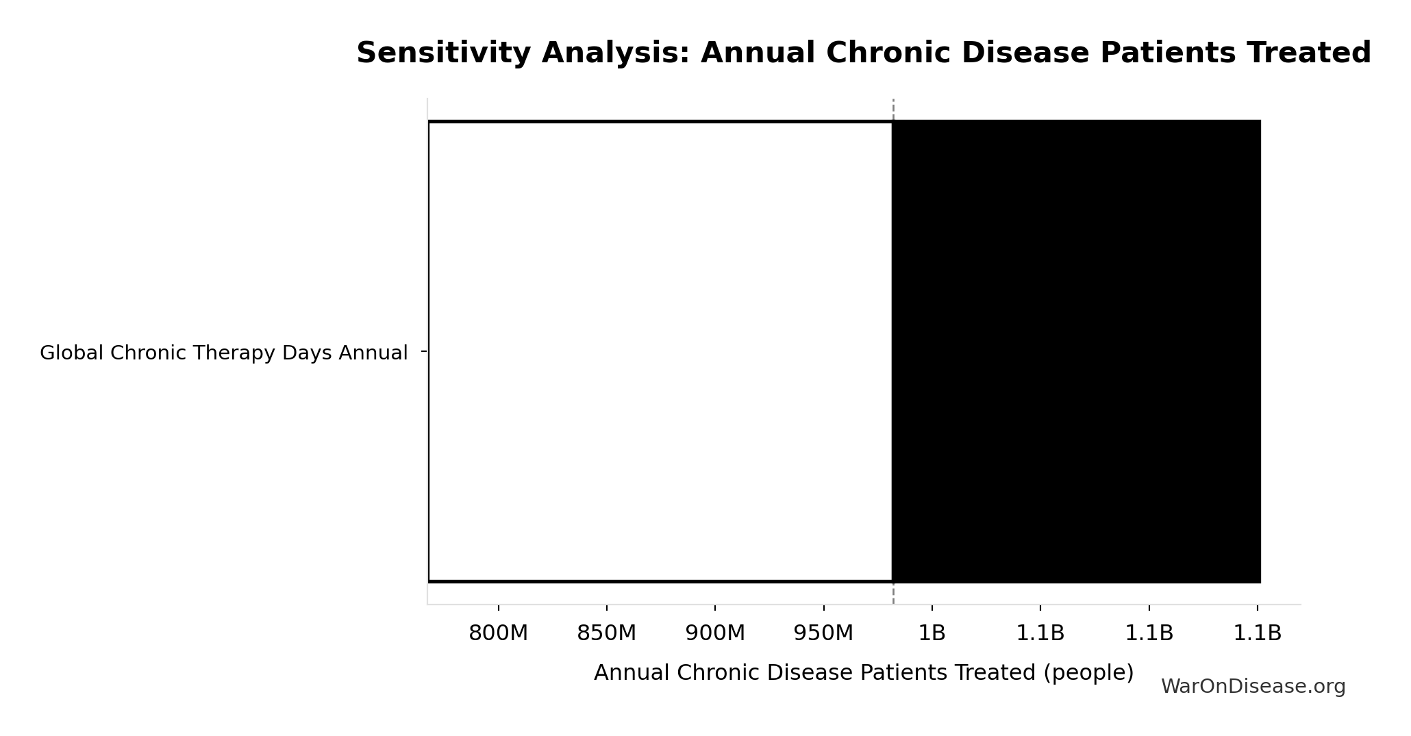 \[ \begin{gathered} N_{treated} \\ = DOT_{chronic} \times 0.000767 \\ = 1.28T \times 0.000767 \\ = 982M \end{gathered} \]