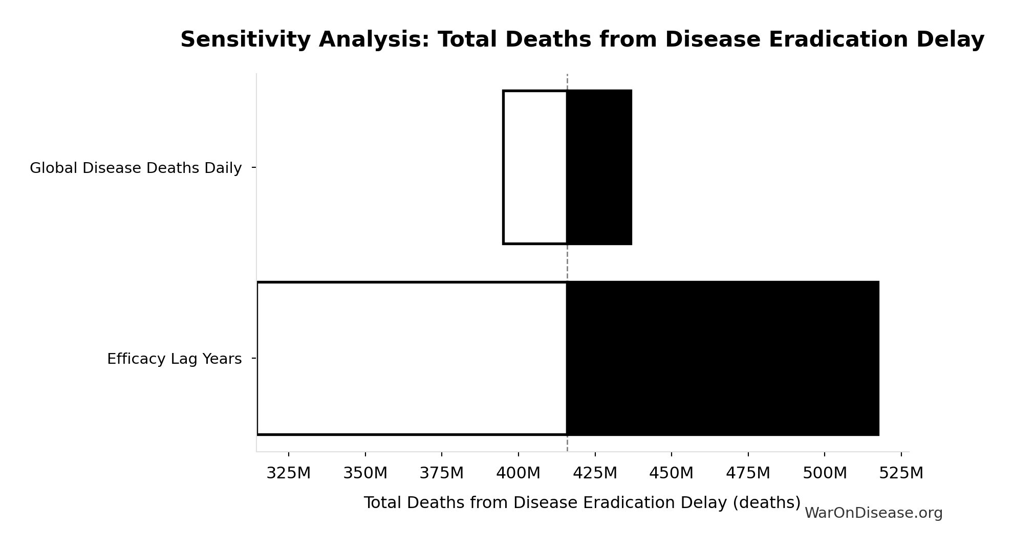 - Total Deaths from Disease Eradication Delay π’: 416M deaths