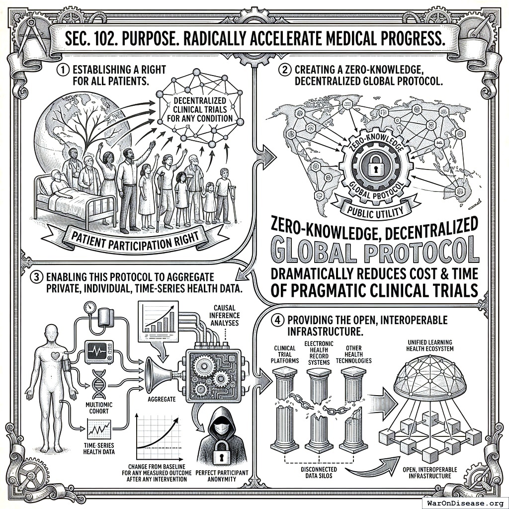 - Creating a zero-knowledge, decentralized global protocol to function as a public utility that dramatically reduces the cost and time of pragmatic clinical trials.