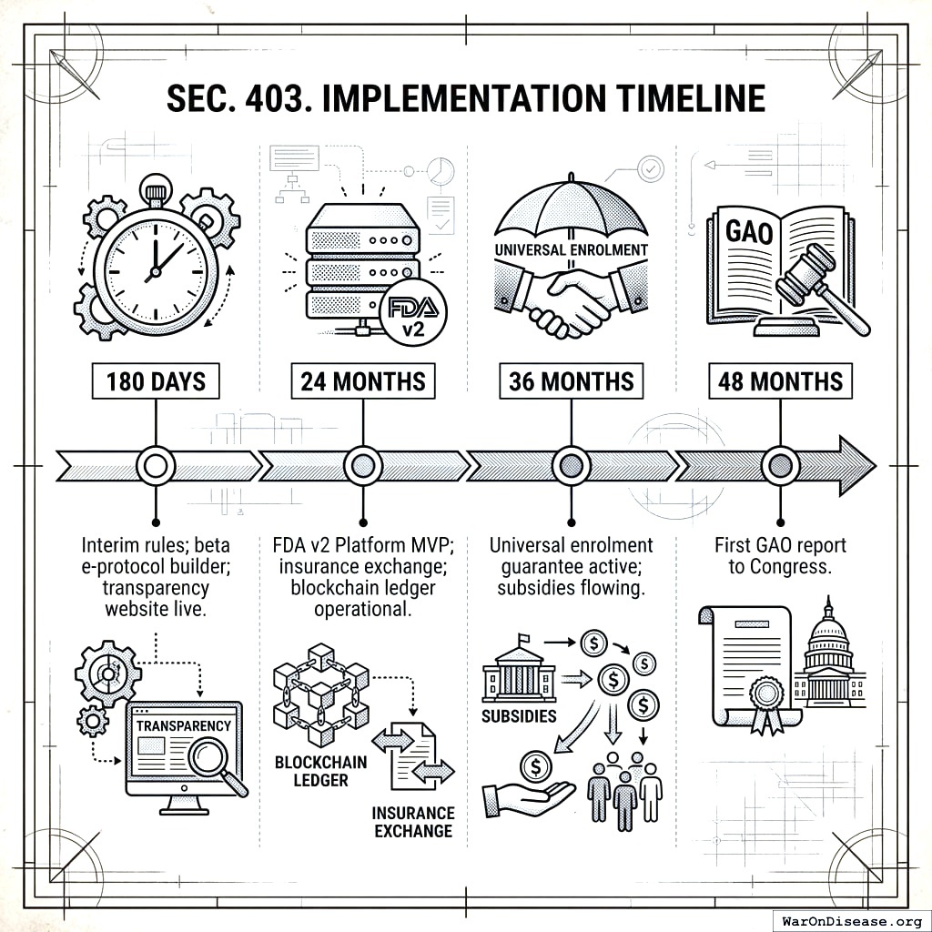 - Launch & Hosting. Within 12 months after enactment, the Secretary shall deploy an open-source, cloud-native FDA.gov v2 Decentralized Health Protocol, which shall include the FDA.gov Public Portal hosted on the fda.gov domain. All source code shall be mirrored in real-time to a public repository (e.g., github.com/fda/fda-v2).