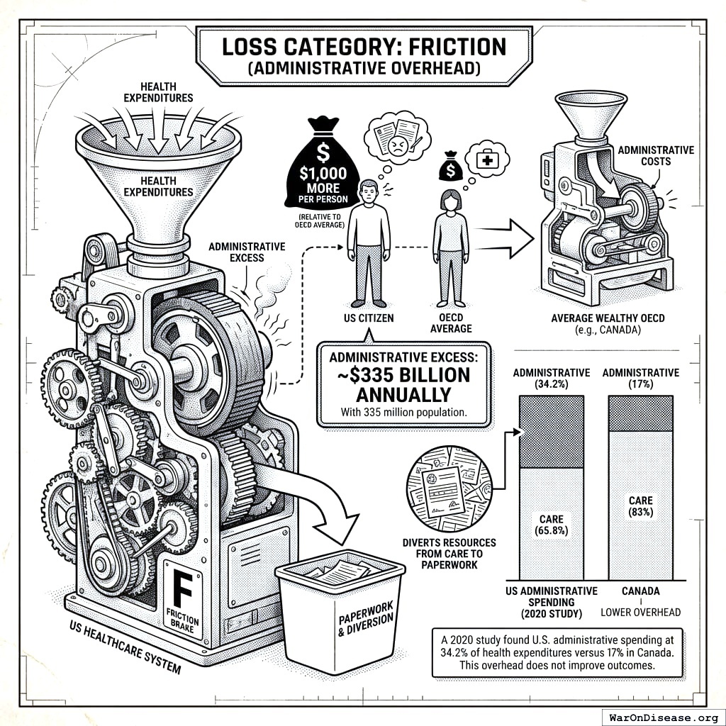 Friction Losses Administrative overhead exceeding minimum necessary (analogous to mechanical friction converting useful work to heat) Healthcare billing complexity, tax compliance burden