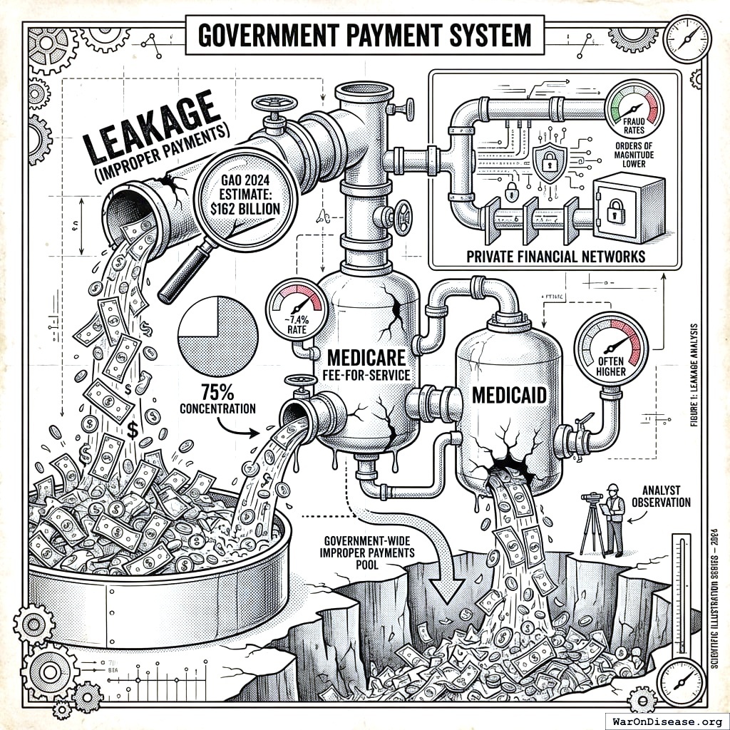 Leakage Fraud, improper payments, unverified expenditure Medicare improper payments, unaudited DoD assets