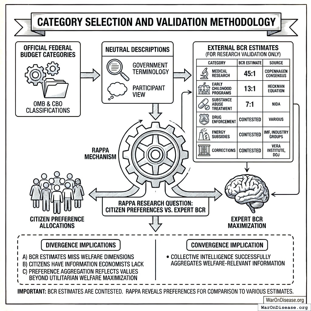 RAPPA is designed for the latter: large option spaces where citizens hold meaningful preferences but lack any tractable mechanism to express them across all dimensions simultaneously. The federal budget, with its trillion-dollar misallocations between citizen preferences and actual spending, represents the highest-leverage application.