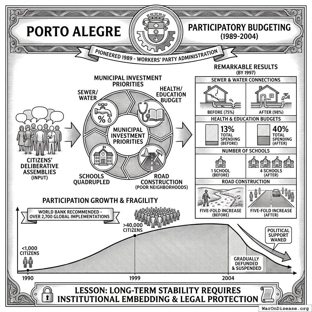 Municipal participatory budgeting has achieved real successes. Porto Alegre’s experience demonstrates that citizen participation can improve service delivery. However, RAPPA addresses a different challenge than traditional participatory budgeting.