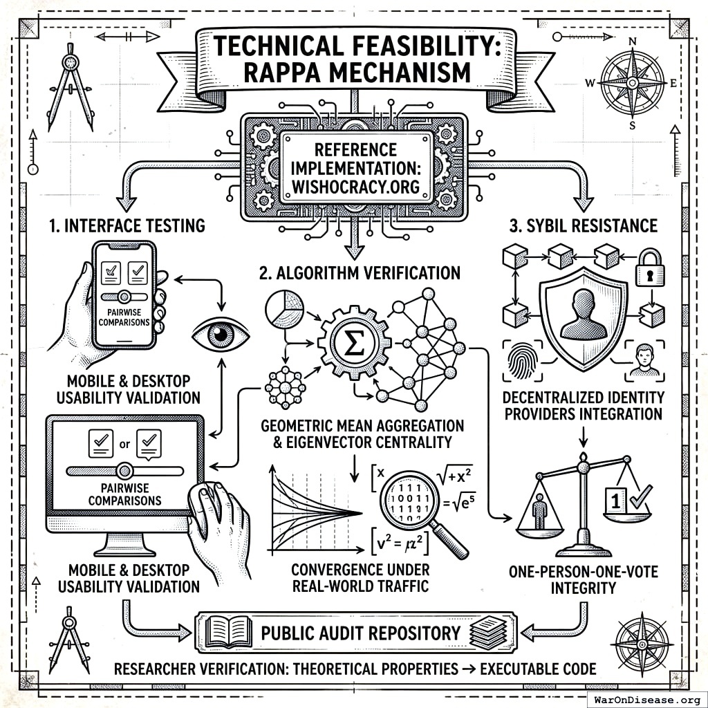 The mechanism is implementable with current technology, grounded in validated theory, and supported by empirical precedents. A reference implementation is available at wishocracy.org for public testing and audit. Whether Wishocracy can achieve its theoretical promise (truly aligning public resource allocation with citizen welfare) remains an open empirical question that only real-world deployment can answer.