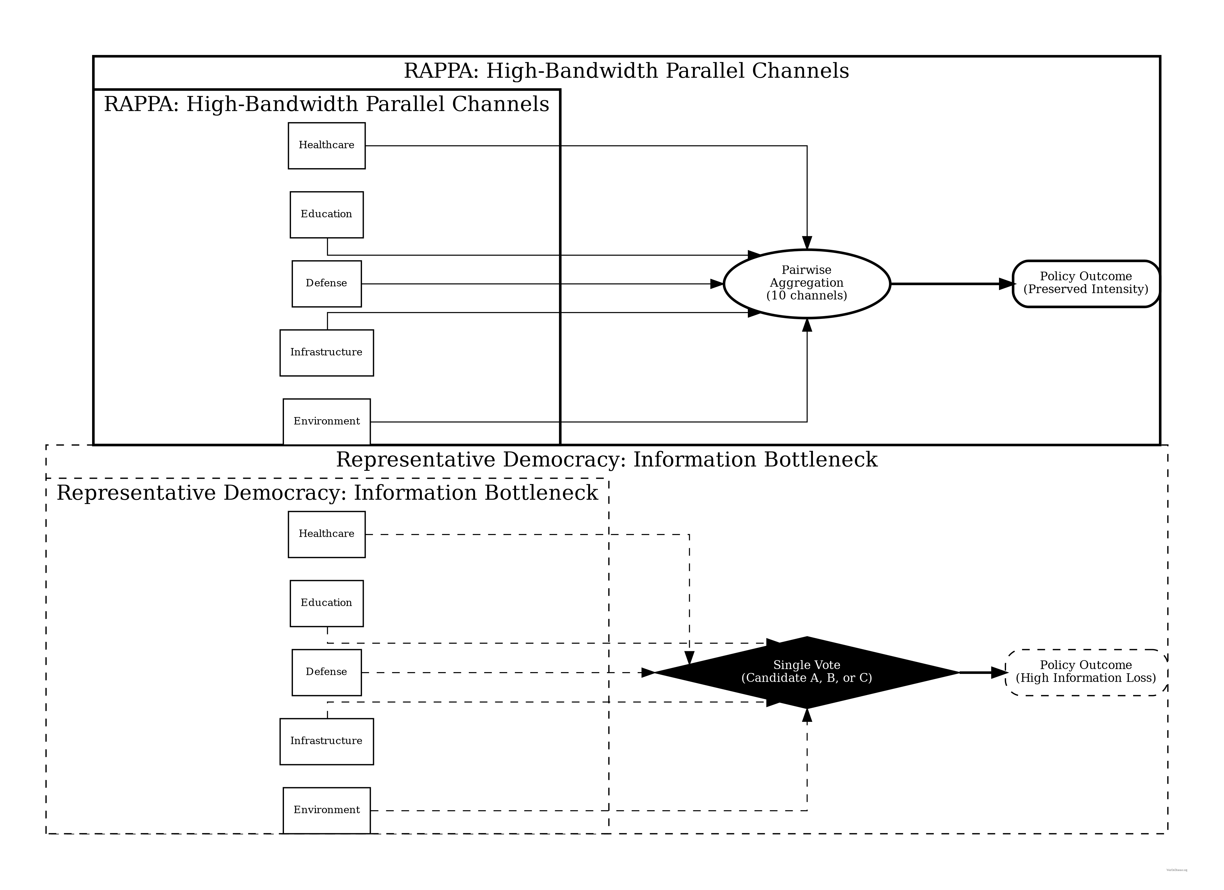 4. Accountability Integration: By producing clear, quantifiable preference signals that can be compared against politician voting records, RAPPA enables accountability mechanisms (Citizen Alignment Scores, Incentive Alignment Bonds) that align representative behavior with citizen welfare.