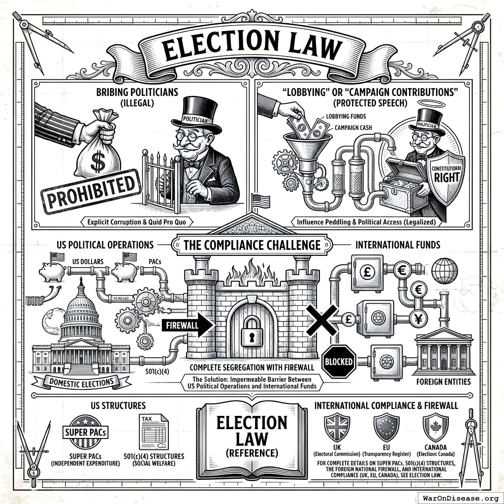 For the full details on Super PACs, the foreign national firewall, and international compliance, see Election Law.