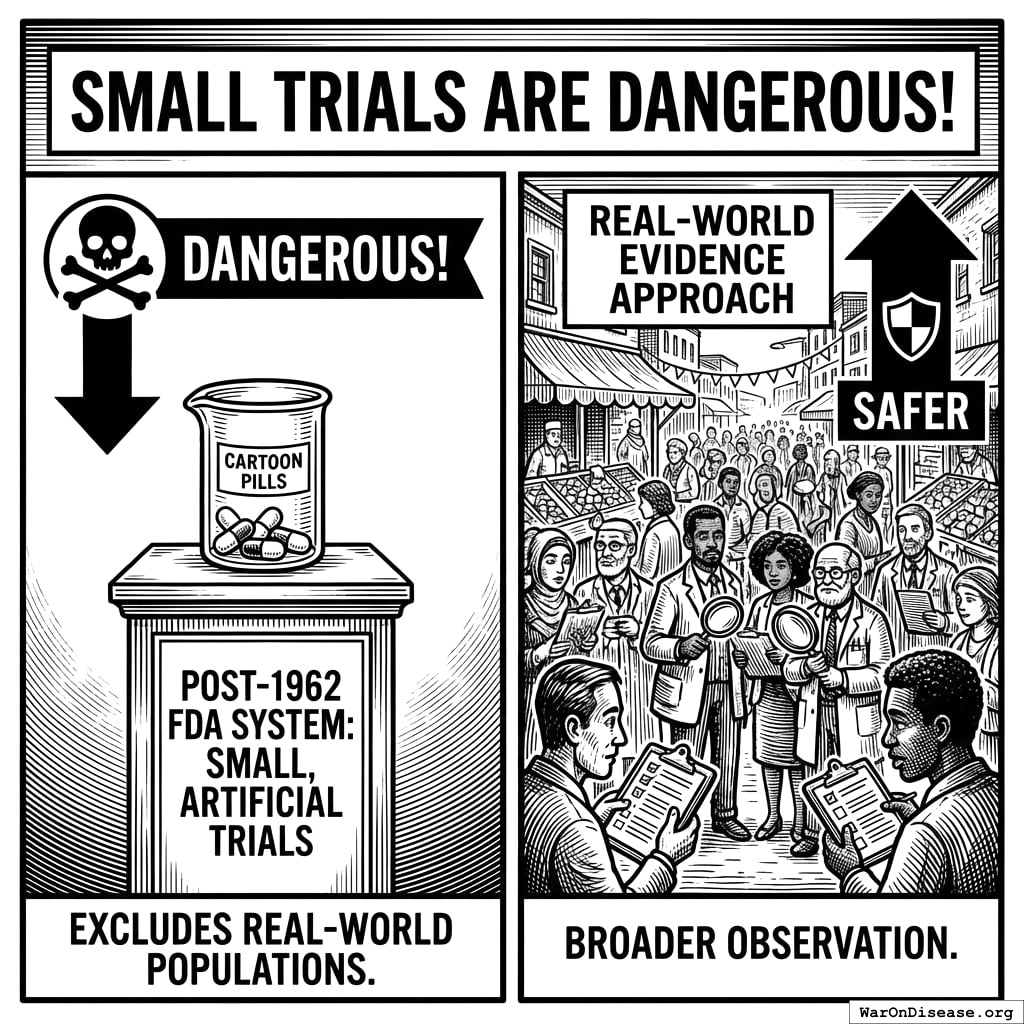 This is the part where humans panic, so let me be very precise about what this chapter is (and isn’t) proposing: keep Phase I safety testing (it works, it caught thalidomide, nobody is suggesting you skip it). Do radically more efficacy testing, on real patients, with transparent results. But stop holding known-safe drugs hostage while you run the trials.