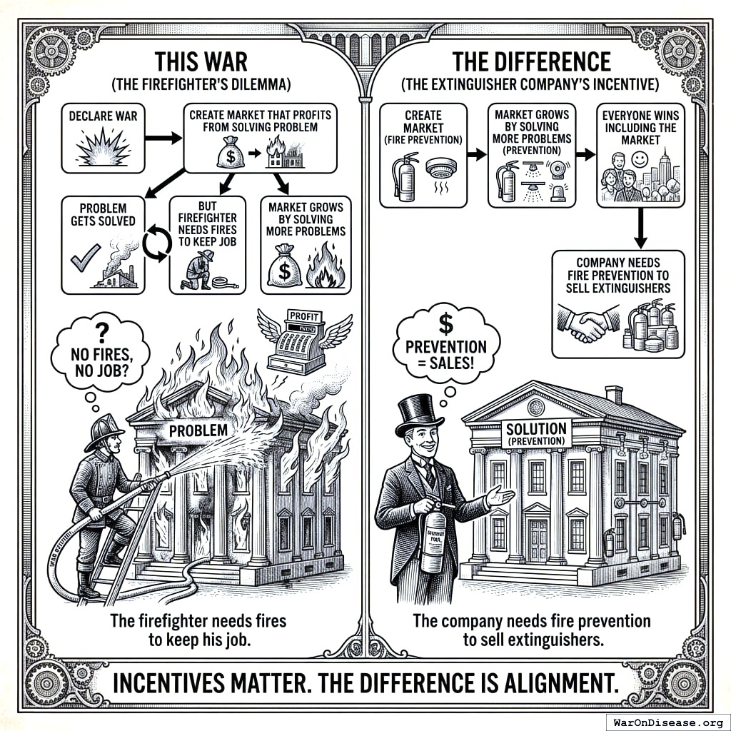The War on Disease is proof of concept. Victory here means you can fix everything else using the same playbook.